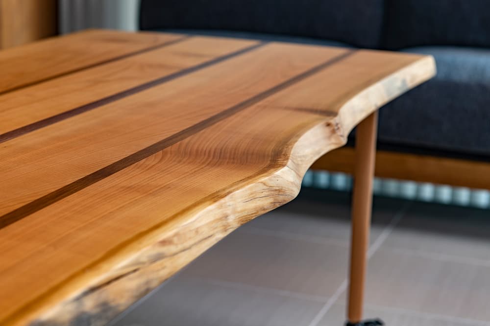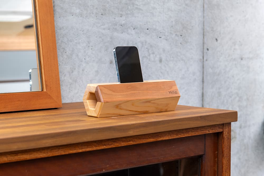 ぬくもりを感じさせる無垢材の天板と大谷石、天然素材の組み合わせです