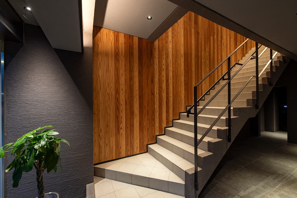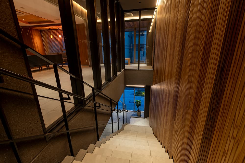 建物内エントランスから内階段をご利用ください。当スペースではスマートロックを採用しています。